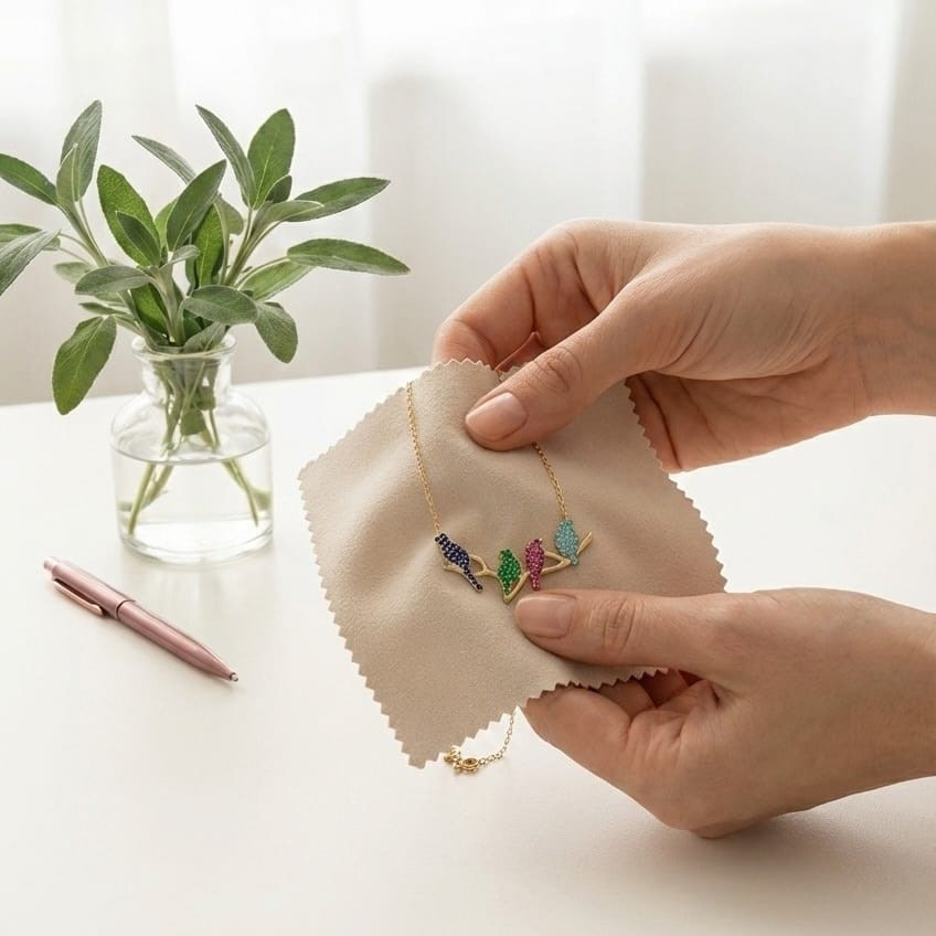 El Toque Final: Tus joyas deben ser lo último que te pongas y lo primero que te quites. Evita el contacto directo con perfumes, cremas corporales o lacas para el cabello, ya que los químicos pueden opacar su resplandor natural.