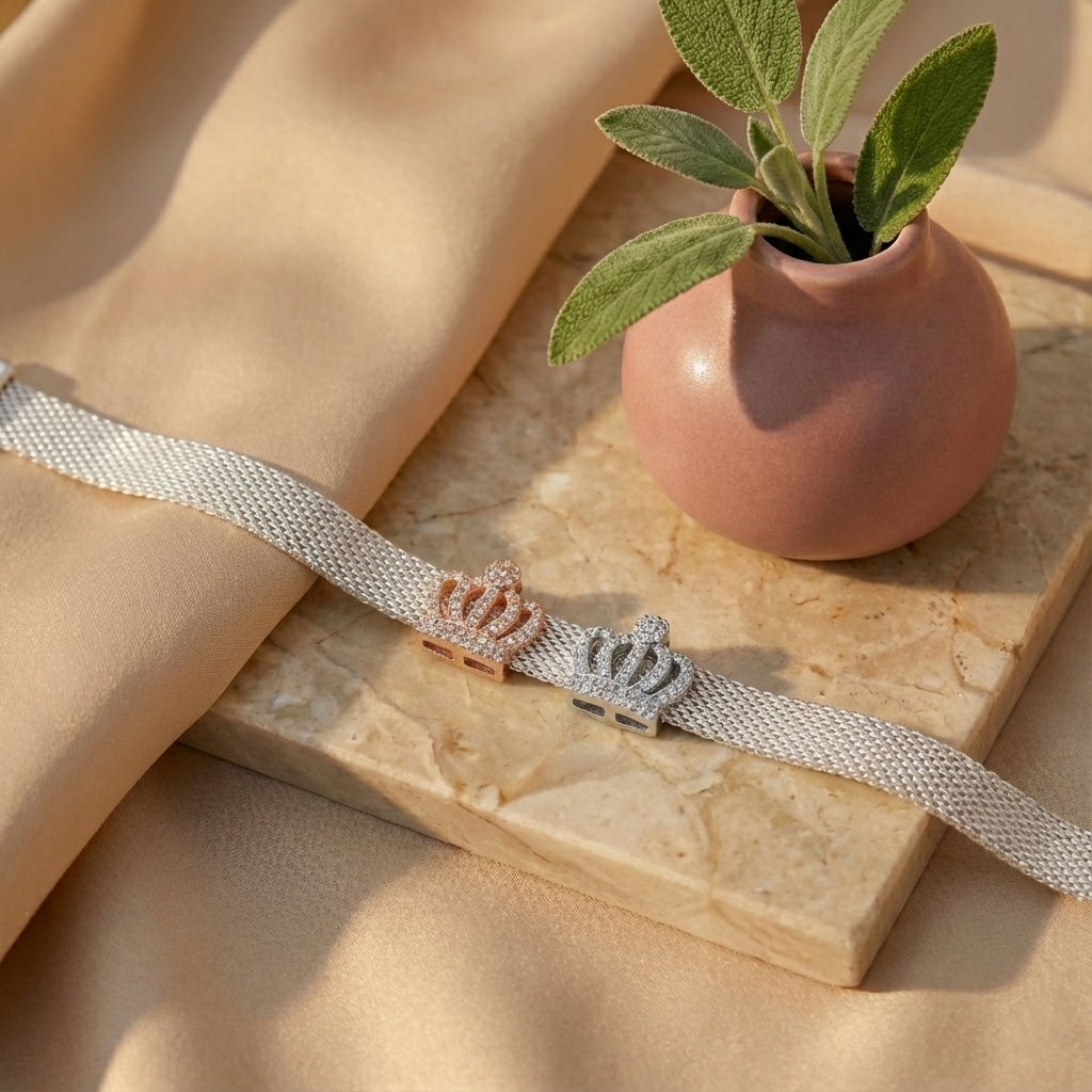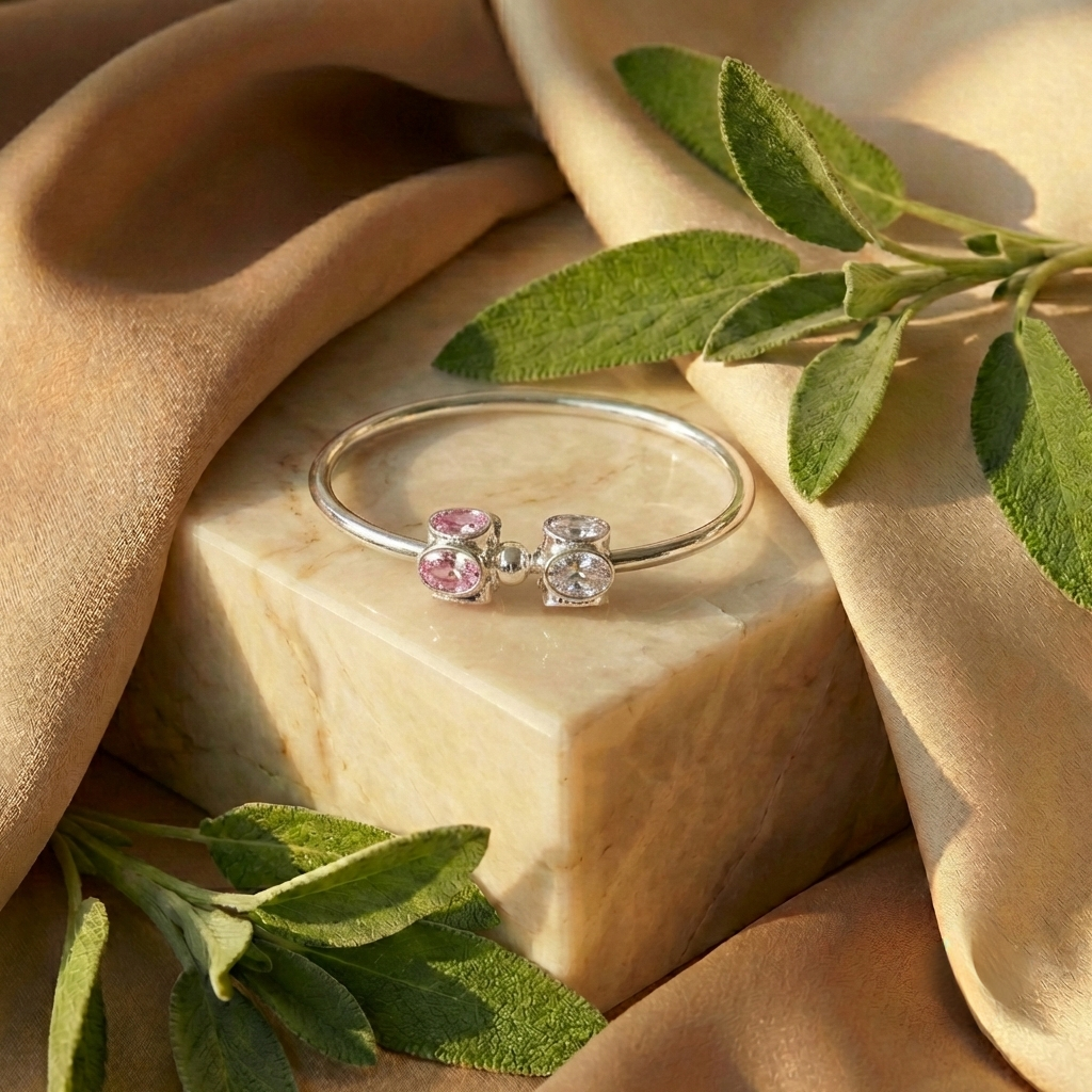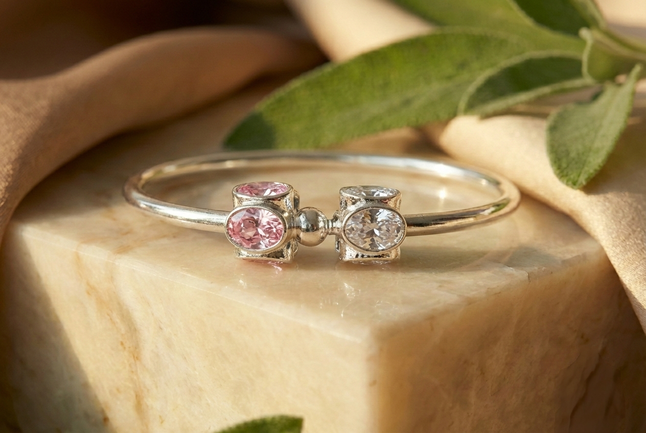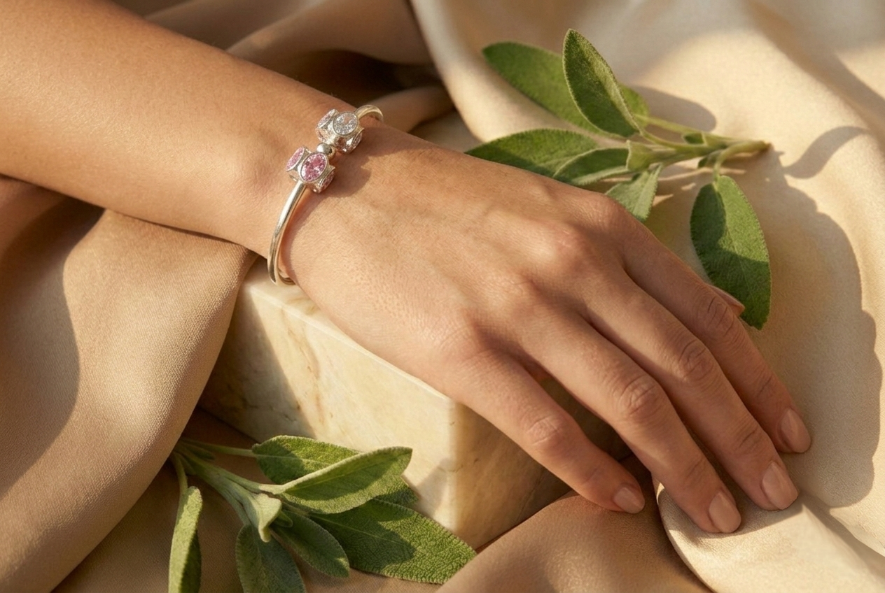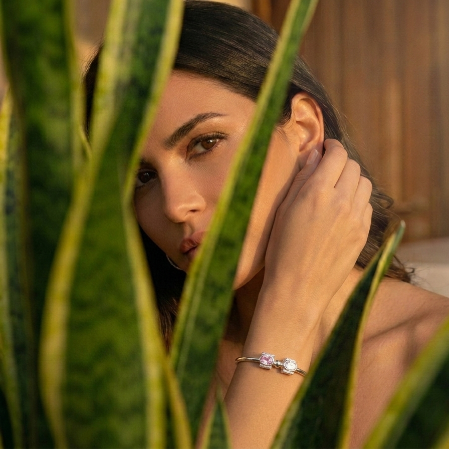 Un toque de destellos rosados en plata pura para elevar el lujo cotidiano.
