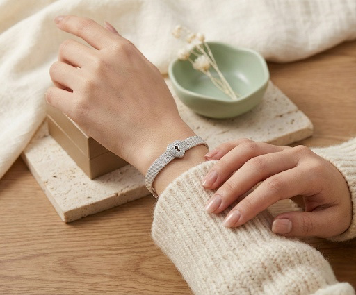El guardián de tus momentos más preciados. Diseñado para acoplarse perfectamente a brazaletes de malla plana, este charm estilo candado combina la seguridad con un romanticismo deslumbrante. Su frente en Plata Italiana está adornado con un pavé de zirconias transparentes que aportan un reflejo de 'efecto espejo', elevando cualquier look con un toque de arquitectura moderna y sentimental.