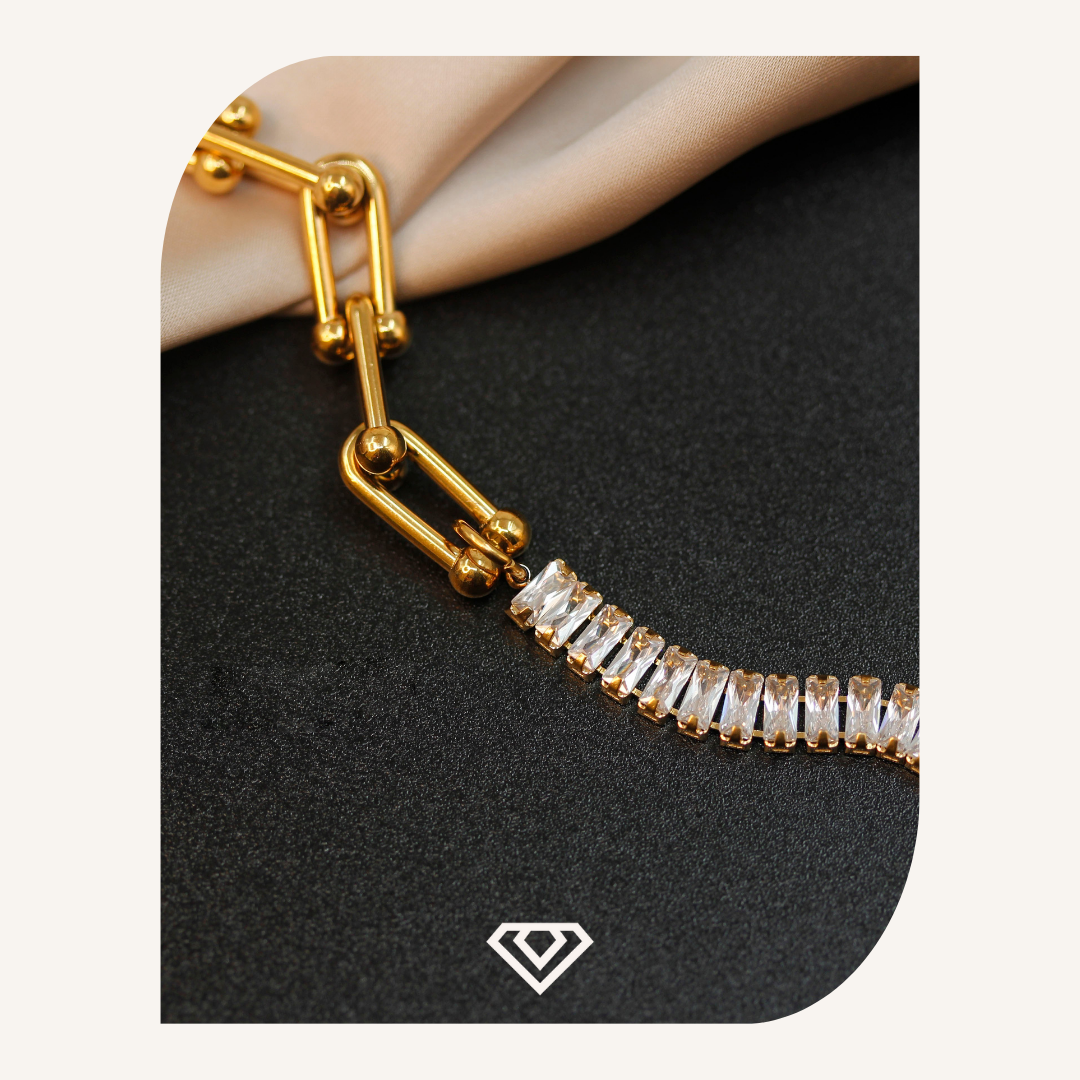 Pulso diseño acero. Decorada con eslabones y cadenitas, ademas de dijes colgantes. Brilla por: 7500 crc